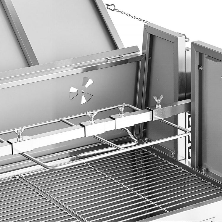 Desempenho profissional para grandes assados ao ar livre com rotação automática.